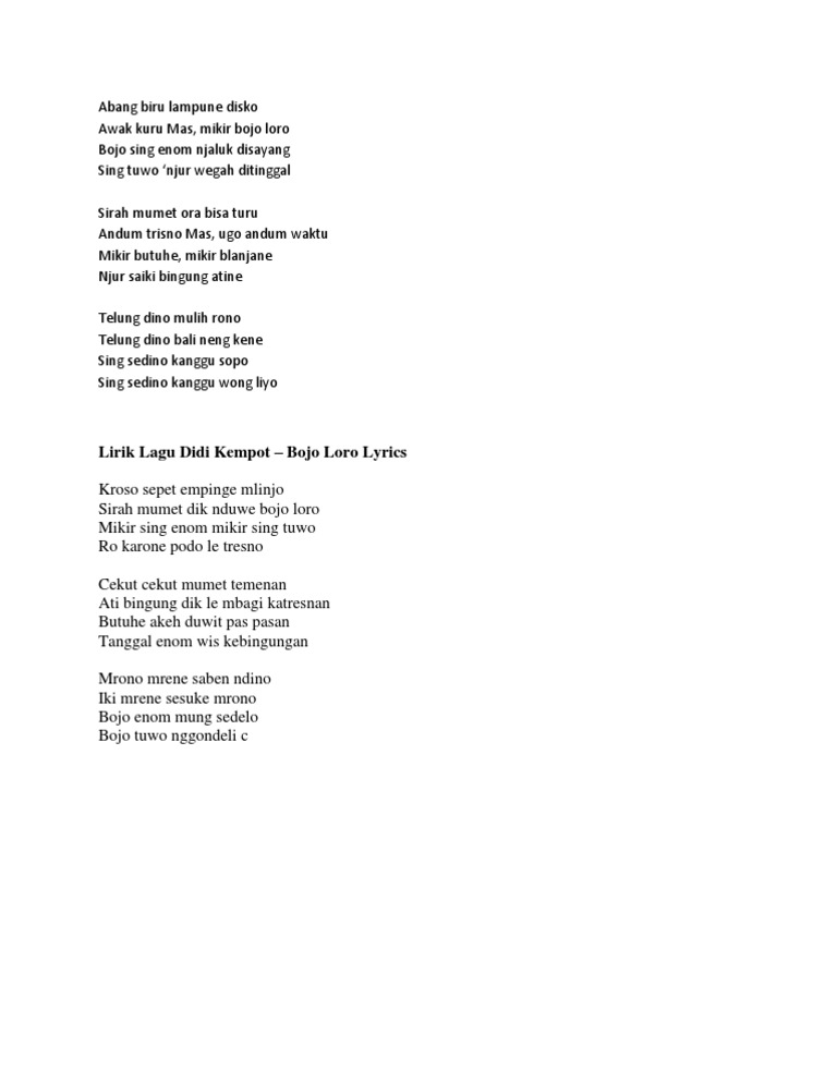 Lirik Lagu Dangdut Lirik Lagu Bojo Loro Didi Kempot