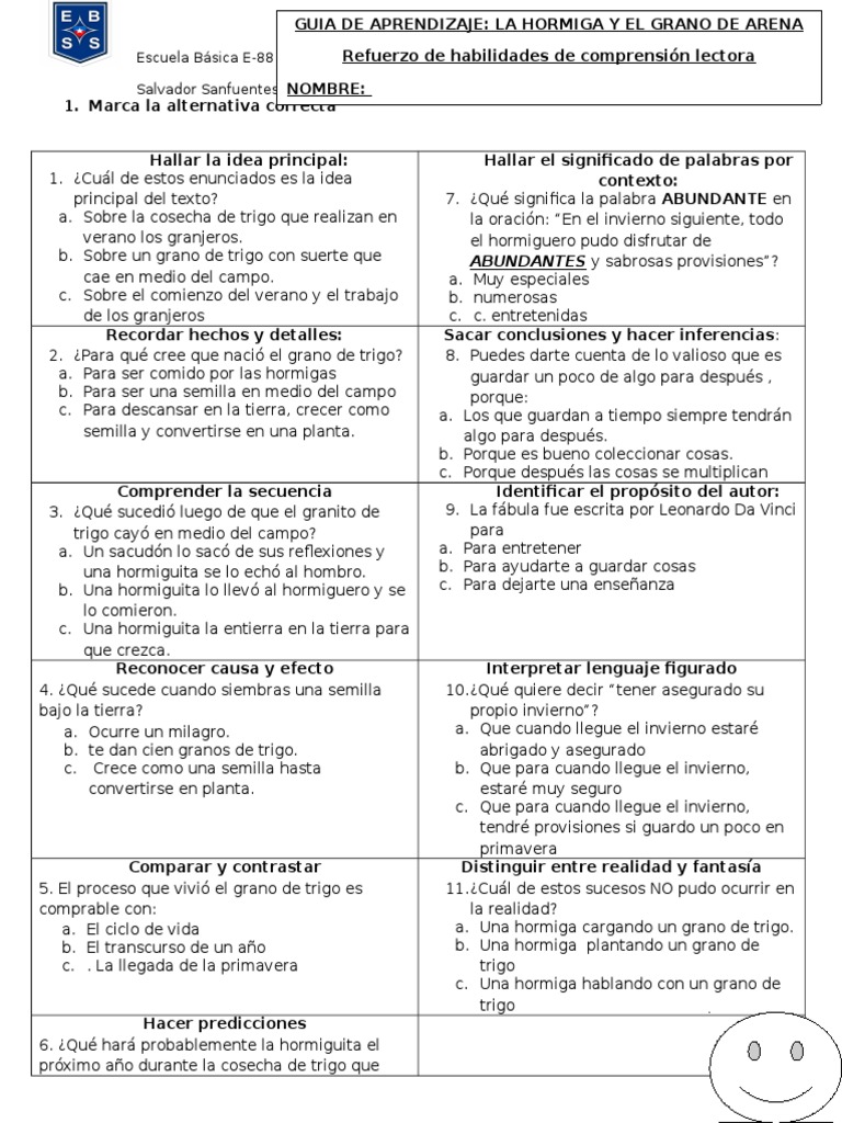 Guia La Hormiga Y El Grano De Arena Hormiga Trigo Prueba